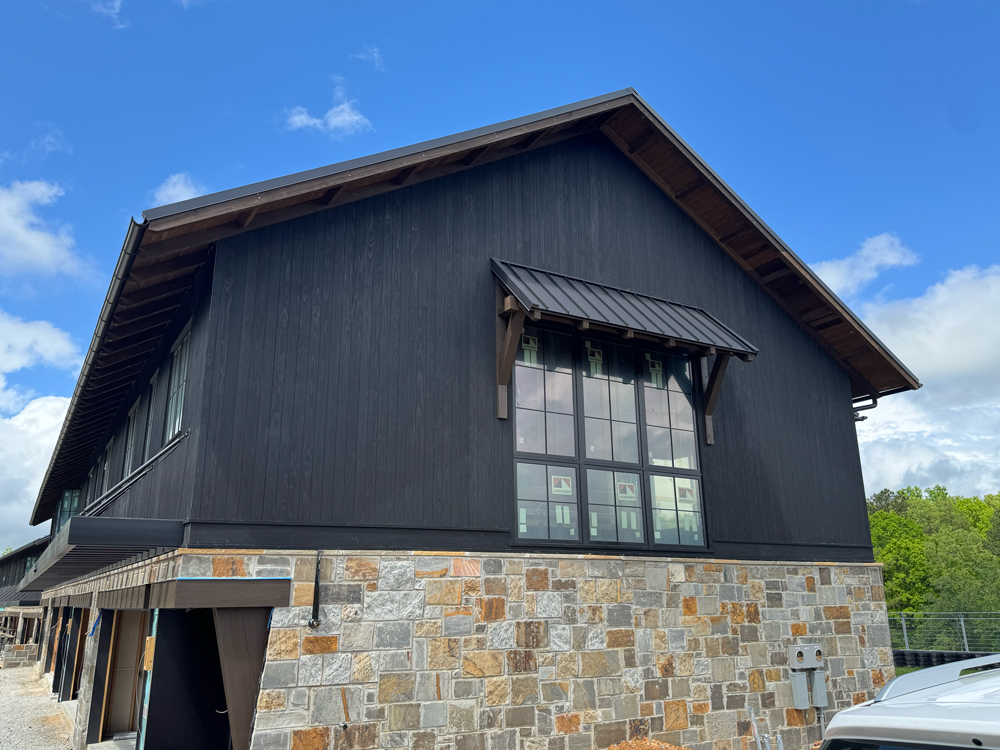 - Project Management: With continuous development planned at Flatrock, the project scope evolved from an initial 10 buildings to 26, and additional buildings scheduled for the future. Each structure required at least 4,200 sq. ft. of cladding and 1,400 linear ft. of trim, delivered on its own unique timeline. To meet specific construction schedules and maintain consistent communication, reSAWN’s in-house Project Manager was assigned to the project to coordinate production, delivery, and updates.