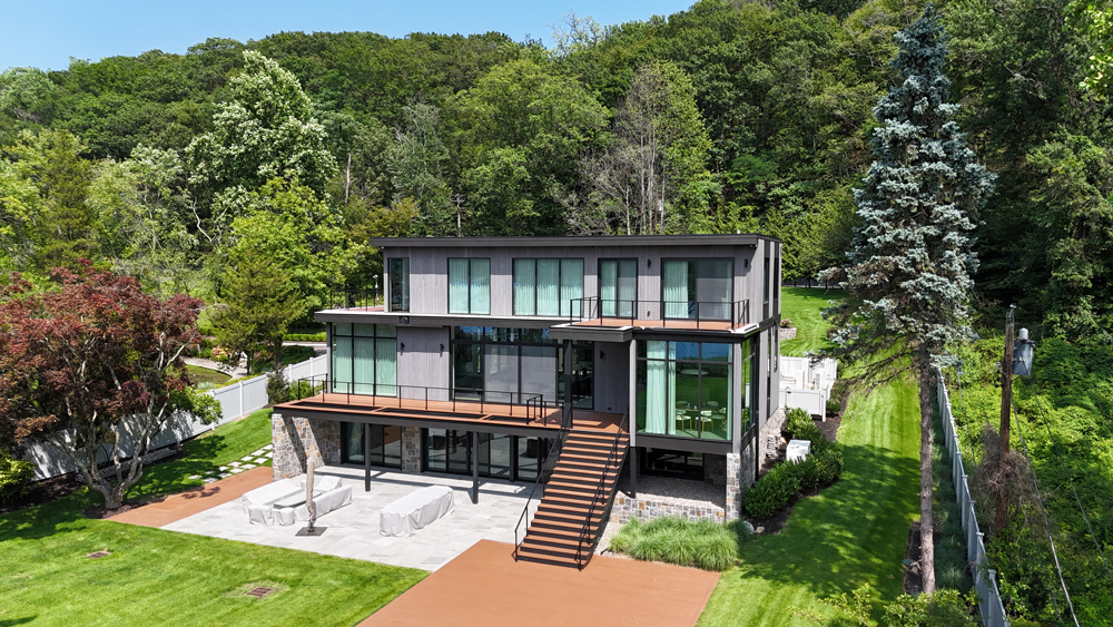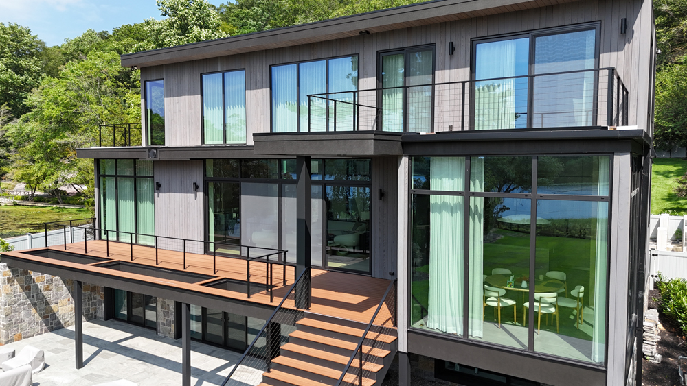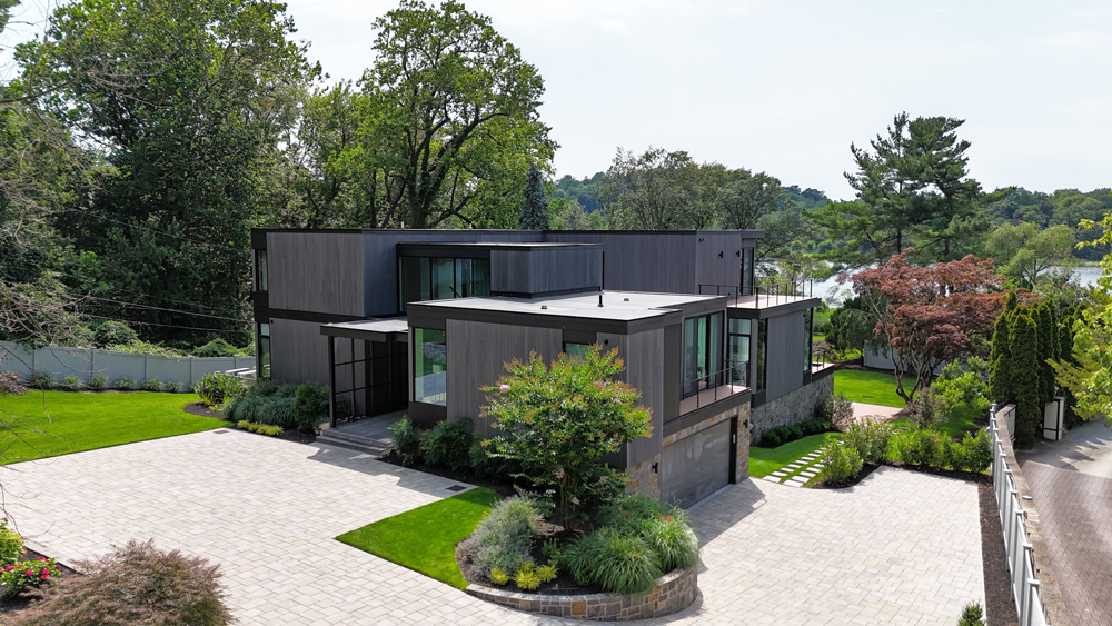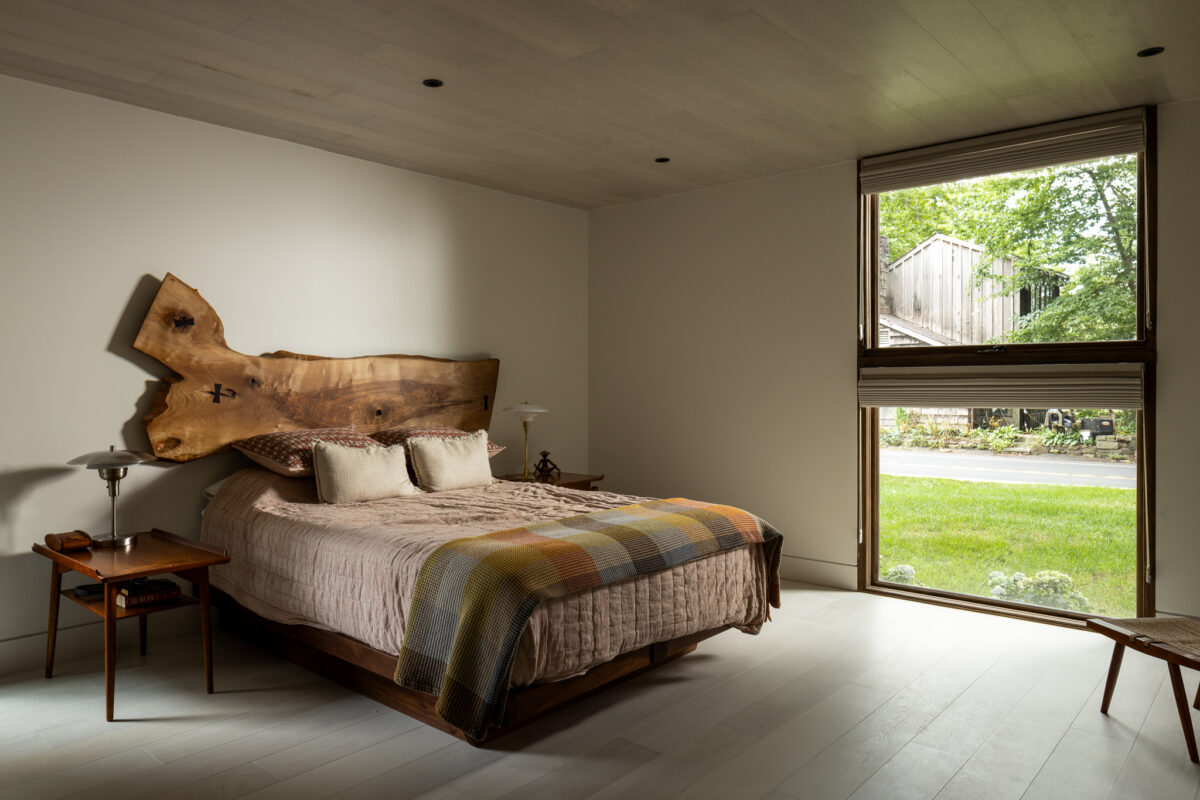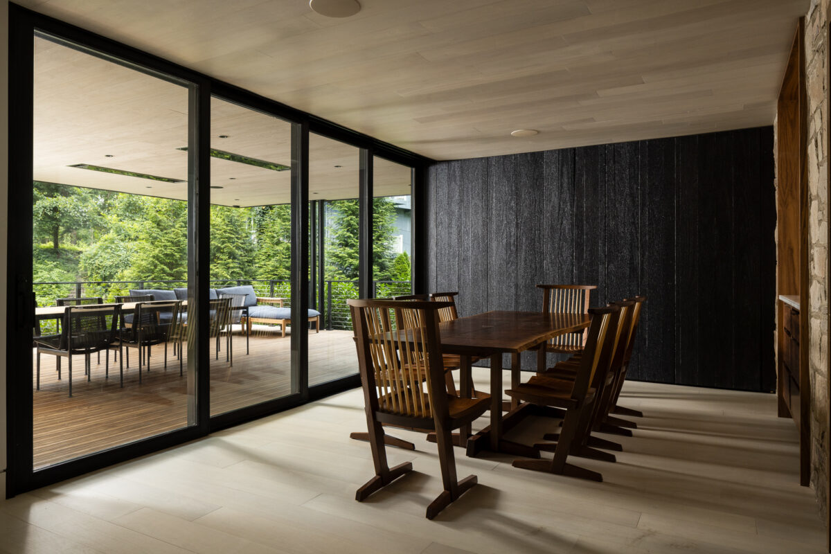 A curated palette of textures and finishes elevate the interior; VETTE charred Kebony offers a bold accent paired with the warmth and natural appeal of ROCKPORT North American black walnut flooring and ceiling cladding. Expansive windows invite an abundance of natural light, illuminating the interior and enhancing the home’s understated luxury.