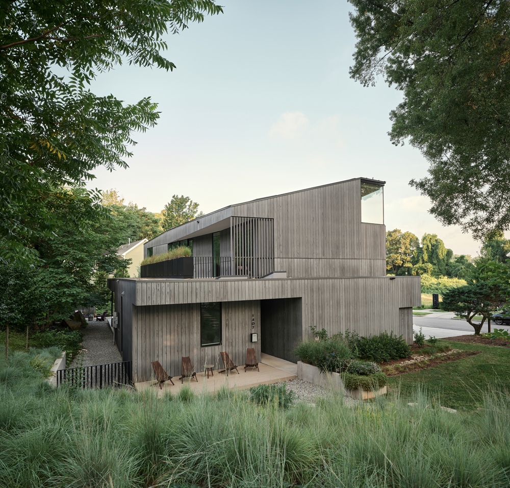 Sycamore Court brings a modern residential vision to the tree-lined streets of Raleigh, North Carolina. Blending the region’s traditional character with a contemporary approach, the award-winning home inspires the community. Balancing privacy, light, and material expression, this cohesive living environment is open, welcoming, and brings a sense of well-being to its occupants and surroundings.