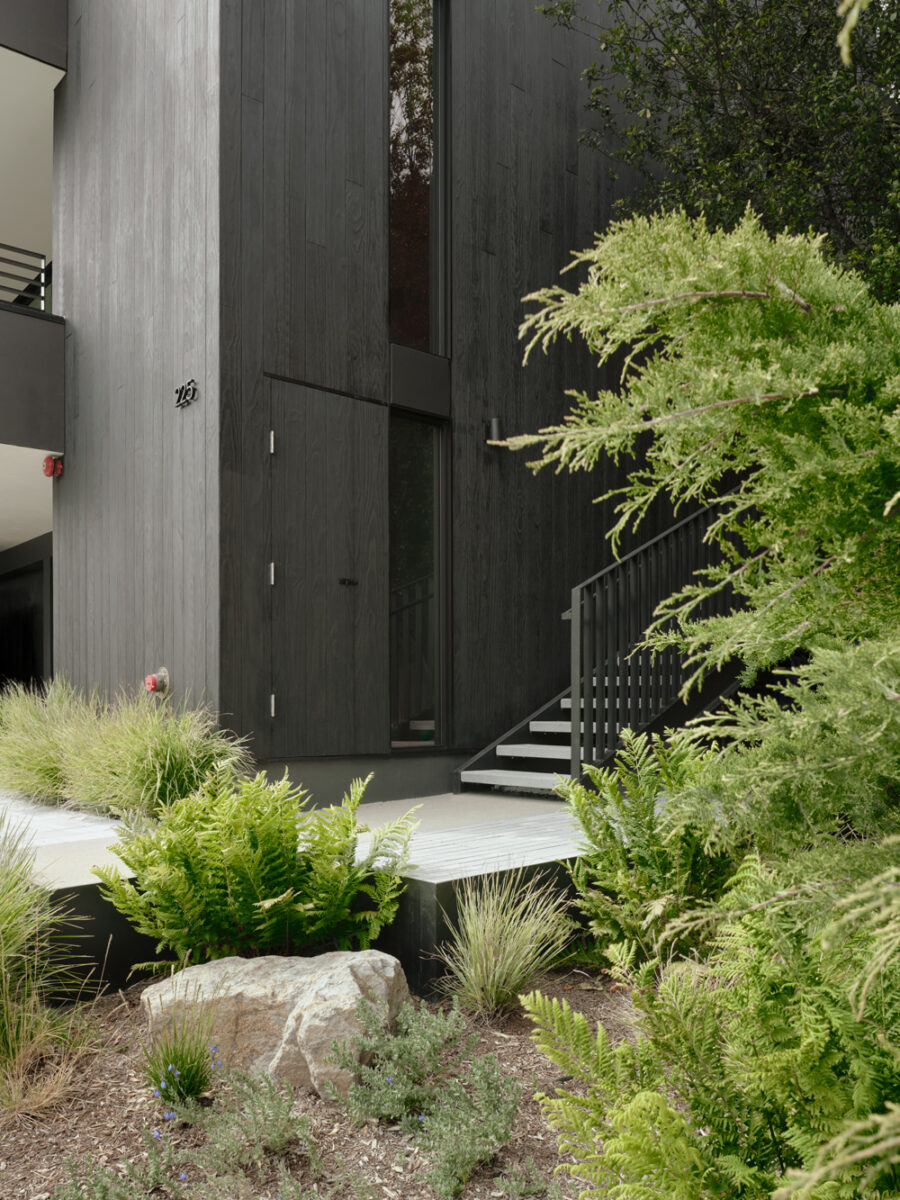 On the exterior, outdated aluminum panels from a previous renovation were removed. As a replacement, the design team sought a material that paid homage to the home’s original plywood siding but delivered more protection against the elements. We provided several product samples that were critical to making the final decision on aesthetics and articulation of the boards. After working through the sample selections with our Specification Consultant, a CUSTOM Shou Sugi Ban cladding in a simple T&G profile was selected to keep the vertical lines subtle, and to further increase the longevity of the exterior.